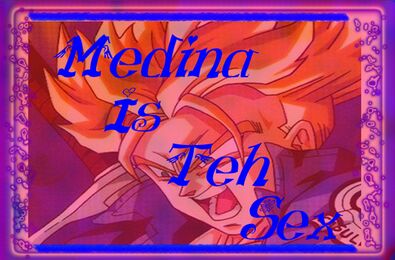 Nicknames: Funky Cold Medina, Ms. Medina, Dr. Medina, Madame Medina, Medina-Chan, Medina-bina, Meddy, Med, Mad, Maddy, Medinza, Meddo, Media, Medeenio, Medino, Madonna, Medication, Medical, Medieval Sensei, Medieval, Mundeena, Mendalina, Mezza, Merlin, My Dinner, Dina, Deenie, Din-Din, Dinch, Deen, Patronizing Bitch, Queen of Kink, Queen of Gross-outs, Evil, The Devil, Spawn of Satan, Scar, Psycho, Psycho Woman, Spastic Fantastic, Smart ass, Master, Trunks, T0, Trunks.0, 0bsession, Trunks lover, Freak, Freakish Freak, Mental, Temperamental, Chippy, Ribina, Woman, A Freaking Energizer Bunny, Sicko, Pervert, Hentai Baka, Sexy, Temptress, Mistress...