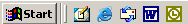 Explorer ('blue e') icon on the Desktop, in the toolbar next to the Start