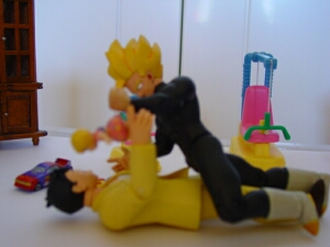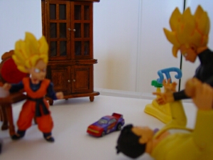 Goten: Hey Gohan! Gohan: (turns his head very slowly) …Uh…heeey Goten…