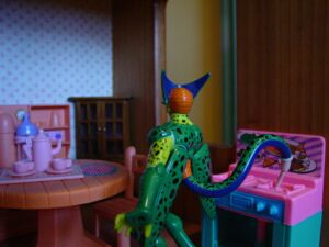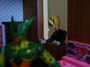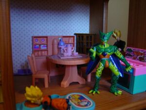 Cell: (senses Gohan) ah…I mean you better…Um…Finish that cat food or er…I’ll GIVE YOU SOME MORE! BWAAAAHAAAHAA!