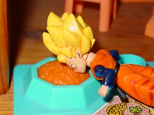 Gohan: (looks through the window) Oh dear Kami! He’s feeding Goten cat food! How awful. |