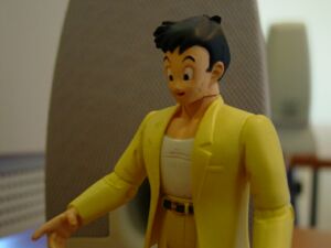 Yamucha: Thought I’d check out Cell’s place. You know to see if he’s there, ah you know. And by that…uh, I mean Goten. Ah why would I want to see that…Strong…Masculine…green grasshopper type thing? |