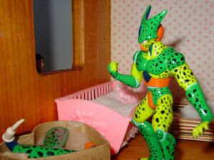 (Yamucha laughs psychotically as he levitates to Cell’s window) (Cell
