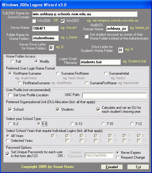 student logons on your school's Windows 2000/2003 server.